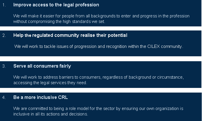 We have made a good start over the last three years, especially on data collection, research, and raising the profile. But there is still much more to do. Our new strategy reaffirms our commitment to doing all we can to ensure fair access for all within the legal services market, including both professionals and consumers. Over the next three years, we will improve access to the profession, support CILEX members to progress, ensure consumers are well served and role model best practice. We are confident that by working together, we can build a more diverse, equitable, and inclusive legal profession for the benefit of everyone.